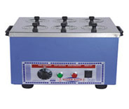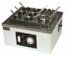 The bath has top made up of tinned copper/brass and body made up of mild steel duly enamel painted. Temperature is controlled thermostat from ambient to 100 degree c. with an accuracy of +- 0.5 degree c. Top made of copper or brass is chromium plated alongwith cups (wax pots). To work on 220/230 volts A.C. supply. Supplied with wax pots but without glass tubes.