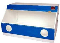 SAME AS ABOVE BUT FABRICATED FROM THICK ALUMINIUM/STEEL DULY WHITE STOVE ENAMELED WITH TRANSPARENT PLEXI GLASS FRONT. SAME AS ABOVE (B) BUT FITTED WITH EXHAUST FAN & FUME DUCT.